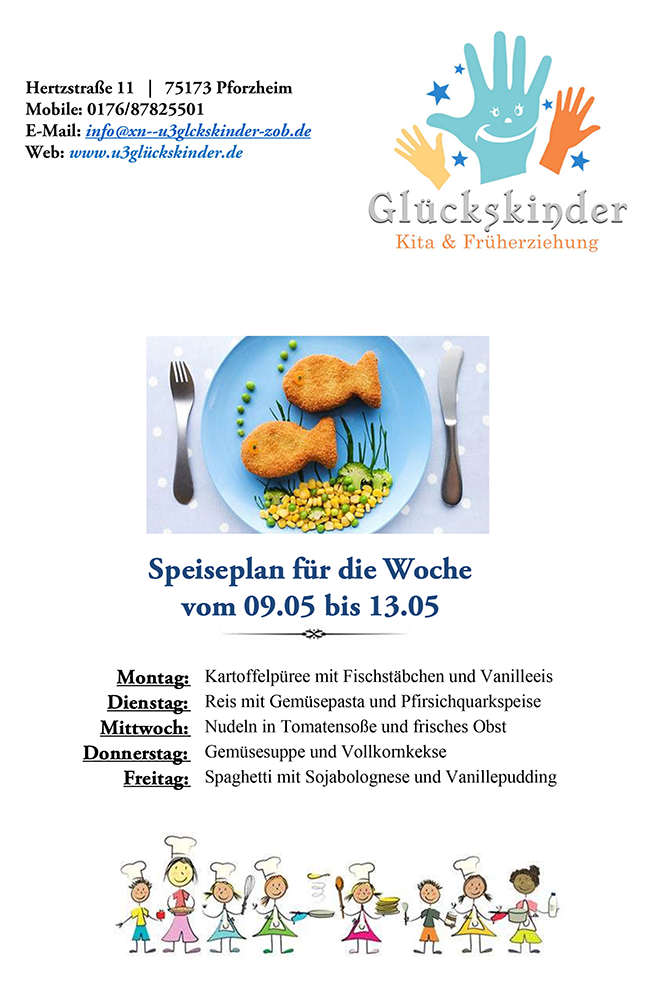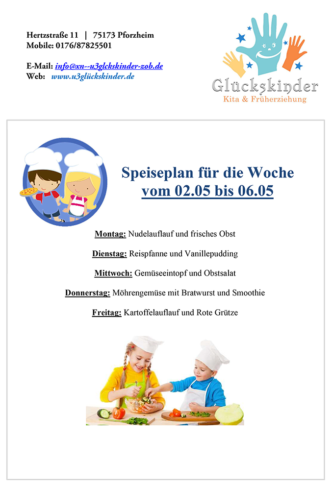 Auf diese Weise wird die natürliche Neugier Ihres Kindes geweckt und es entwickelt Spaß am Essen. Wenn Ihr Kind aus gesundheitlichen Gründen eine besondere Ernährung braucht oder Sie Wünsche bezüglich der Ernährung haben, werde ich Ihre Ansprüche selbstverständlich beachten und umsetzen.